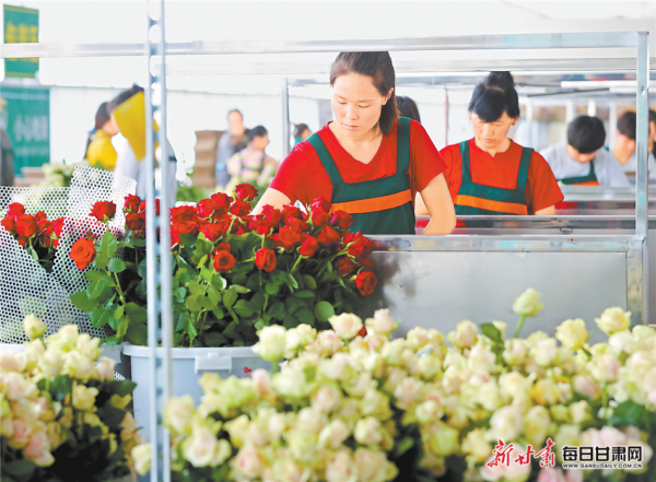 蘭州新區(qū)農(nóng)投集團(tuán)花卉產(chǎn)業(yè)基地鮮切玫瑰走俏市場。