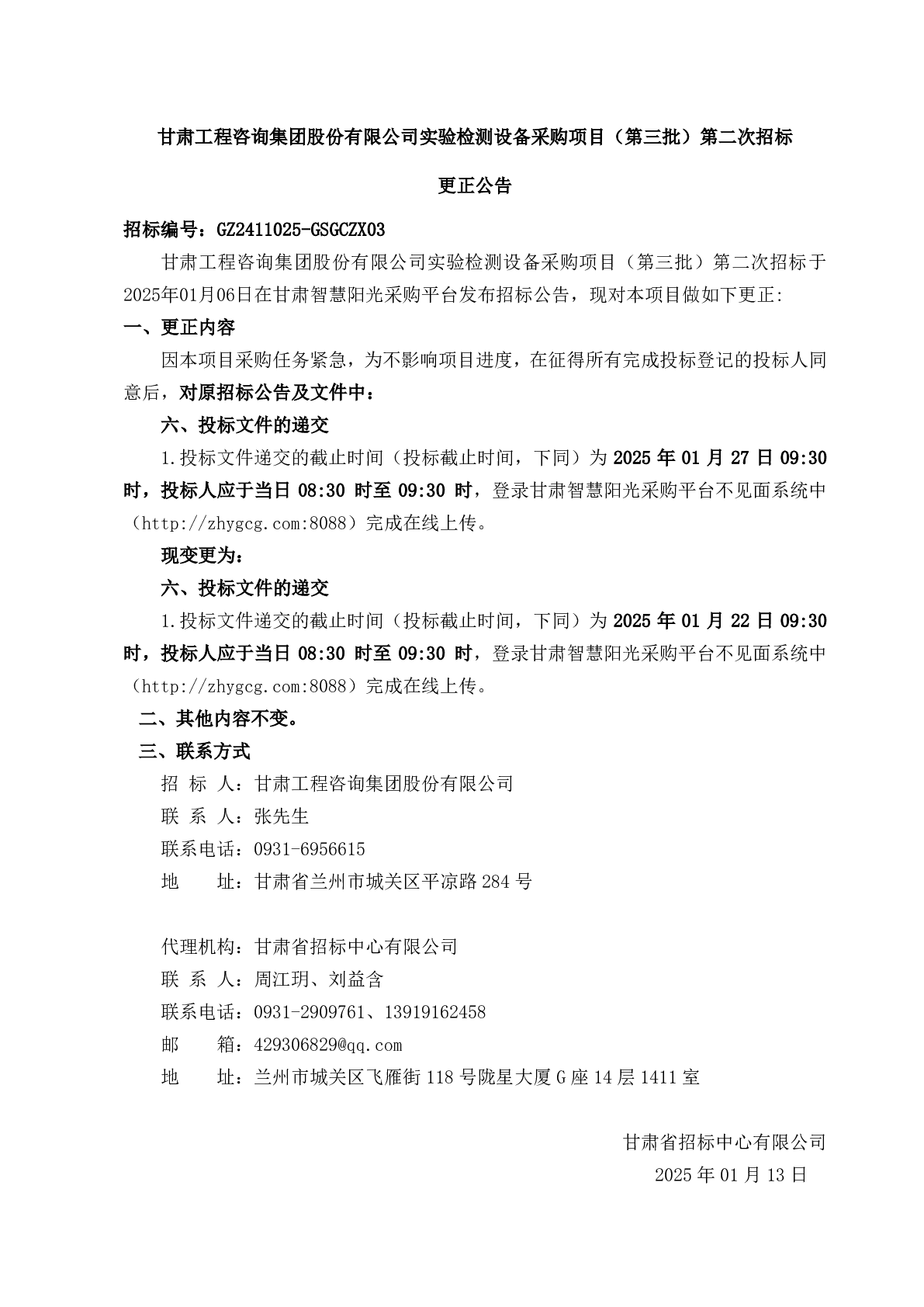 甘肅工程咨詢集團股份有限公司實驗檢測設(shè)備采購項目(第三批)第二次招標(biāo) 更正公告