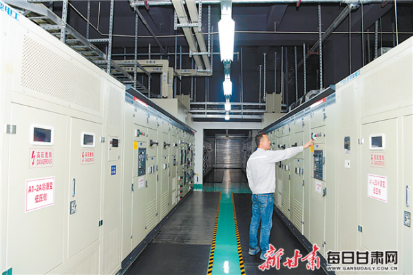 金昌紫金云產(chǎn)業(yè)園區(qū)數(shù)據(jù)中心機(jī)房內(nèi),工作人員正在檢查設(shè)備。