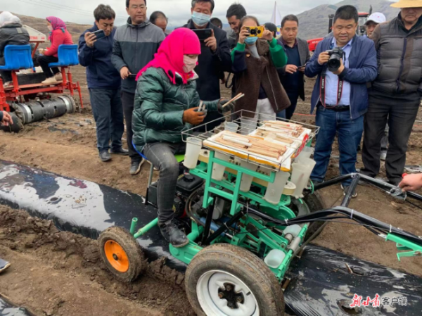 “有了這臺機器,栽種當(dāng)歸苗不容易倒了。”坐在電動秧苗移栽機上,岷縣茶埠鎮(zhèn)尹家村村民趙云霞感慨地說道。