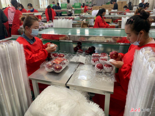 天水花牛蘋果產(chǎn)業(yè)園蘋果包裝流水線。