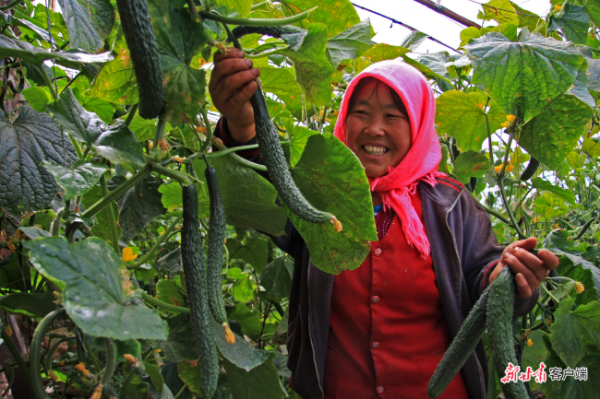 我省啟動三年倍增行動,帶動農(nóng)民收入持續(xù)增長。圖為永昌縣水源鎮(zhèn)方溝村村民收獲黃瓜。?(省農(nóng)業(yè)農(nóng)村廳供圖)