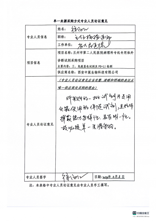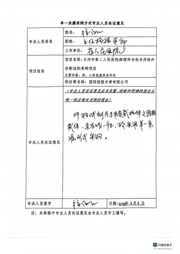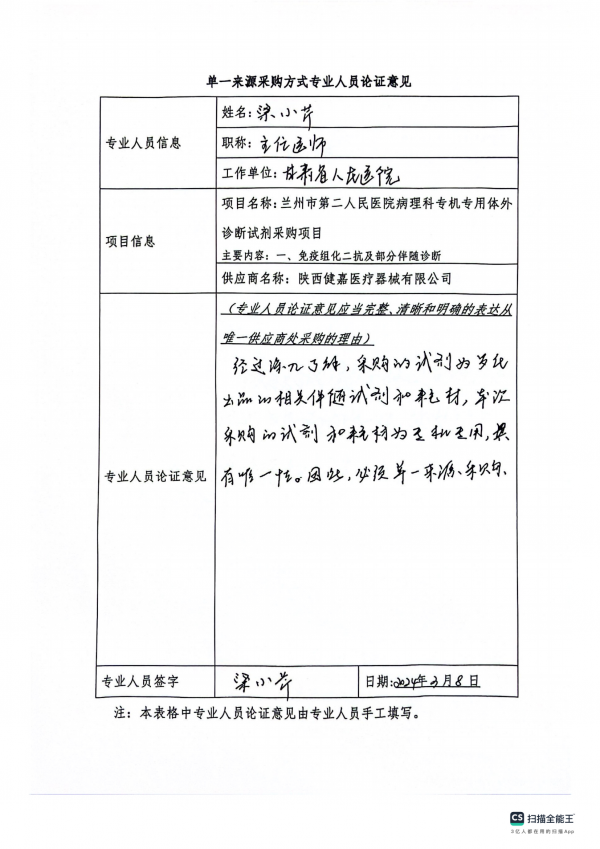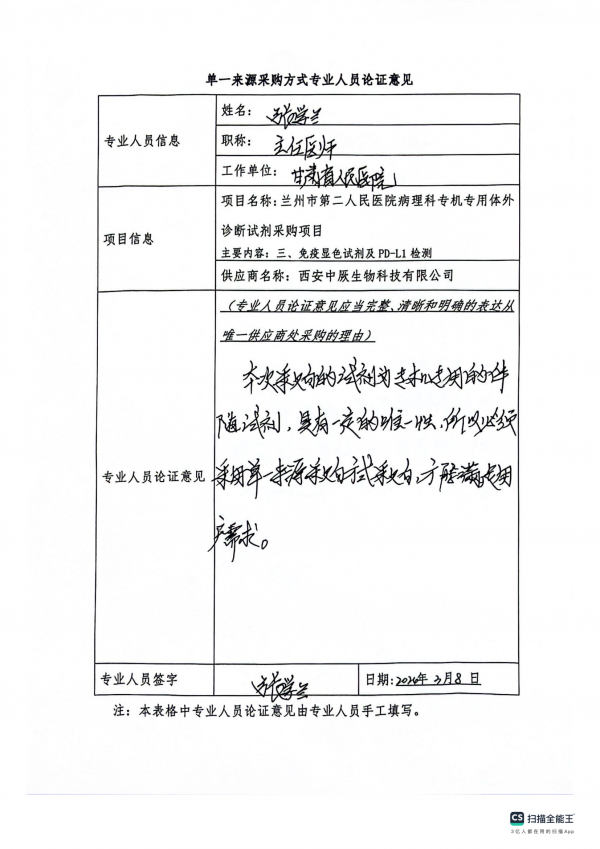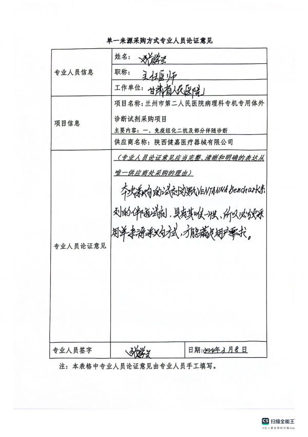蘭州市第二人民醫(yī)院病理科專機專用體外診斷試劑采購項目