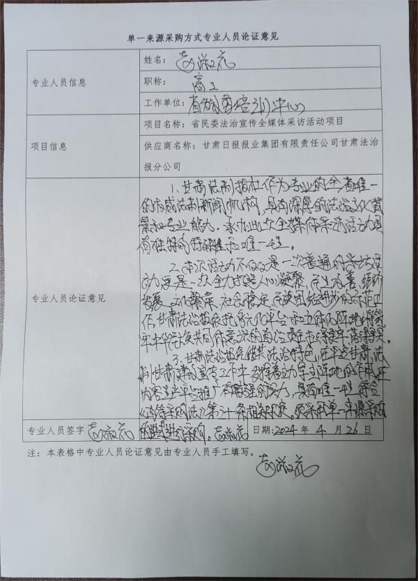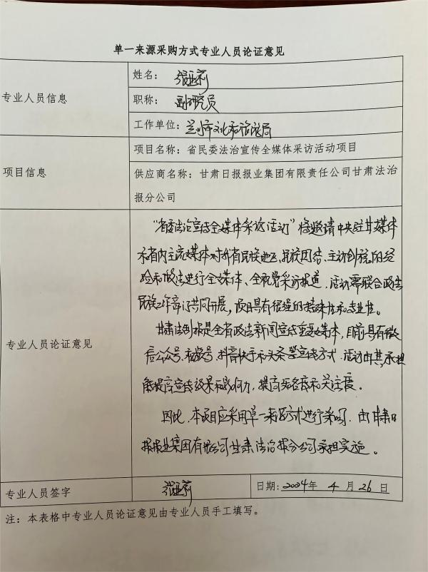 綜上,由甘肅法治報社承辦此次全媒體采訪行具有其獨特的特殊性和唯一性,既體現了甘肅法治報社的專業(yè)素養(yǎng)和責任意識,也展現了其在推動法治社會建設和鑄牢中華民族共同體意識中的積極作用。為此特申請以單一來源方式采購。