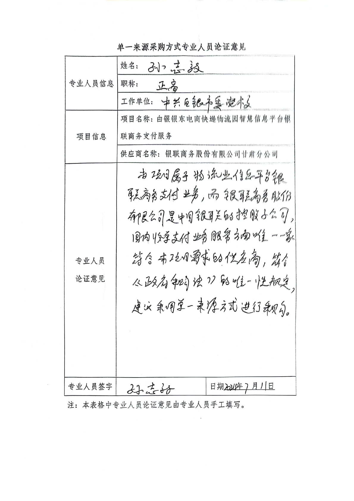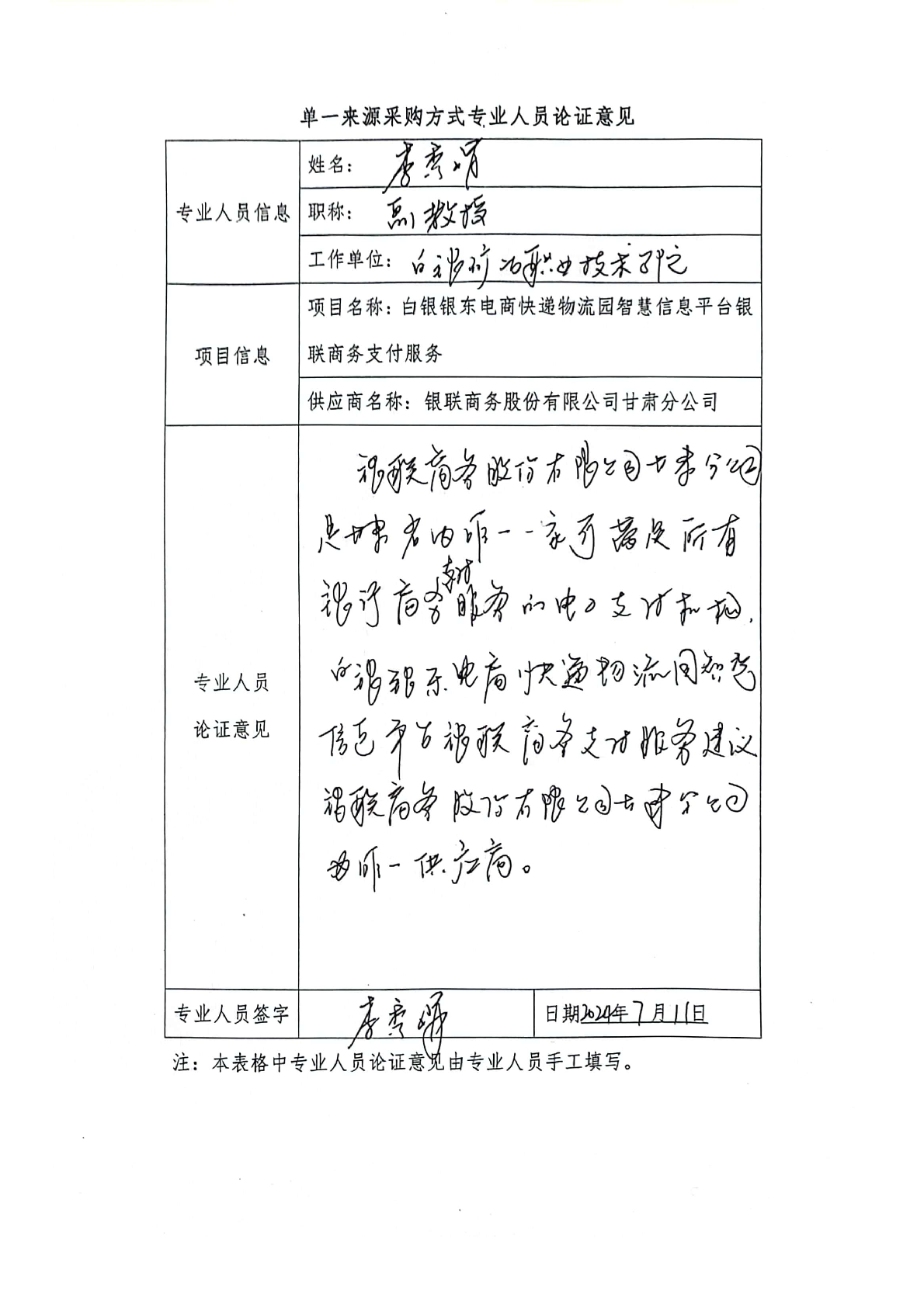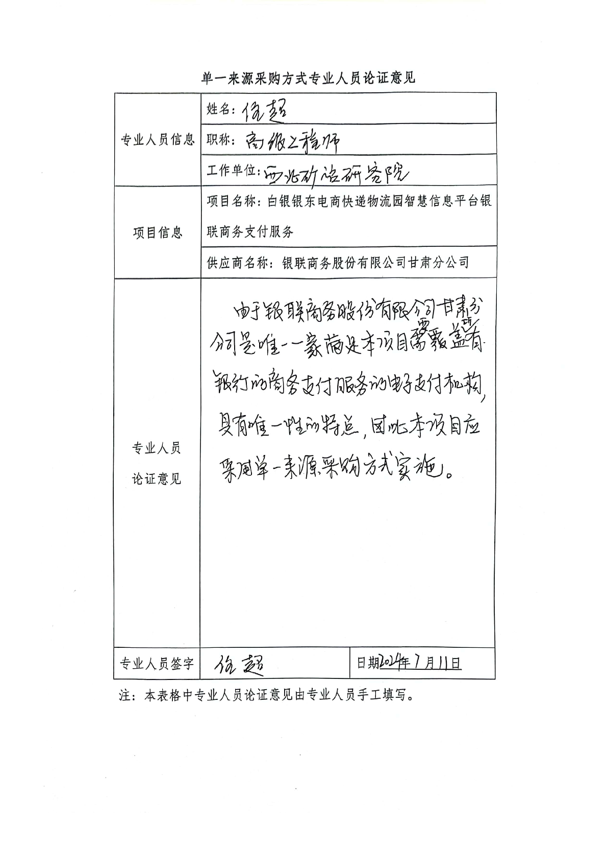 采用單一來源采購方式的原因及說明:本項目屬于物流業(yè)信息平臺銀聯商務支付服務,地域在白銀銀東電商快遞物流園。經市場調研,目前在白銀區(qū)內銀聯商務股份有限公司甘肅分公司覆蓋所有銀行的商務支付服務電子支付機構,是唯一一家滿足本項目需求的支付機構,符合中國政府采購法中單一來源采購條件。建議該項目實行單一來源采購。