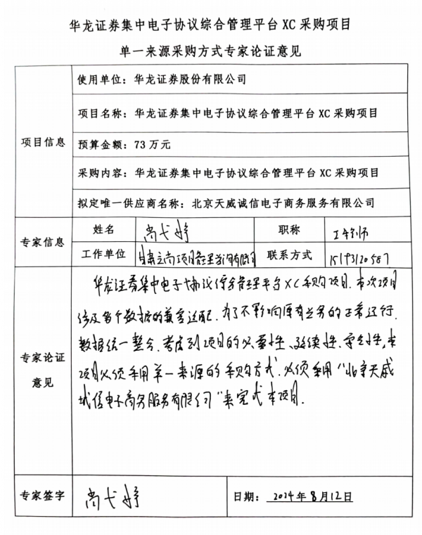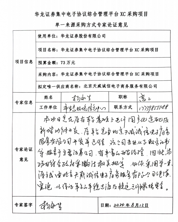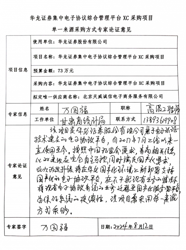 華龍證券集中電子協(xié)議綜合管理平臺(tái)XC采購(gòu)項(xiàng)目