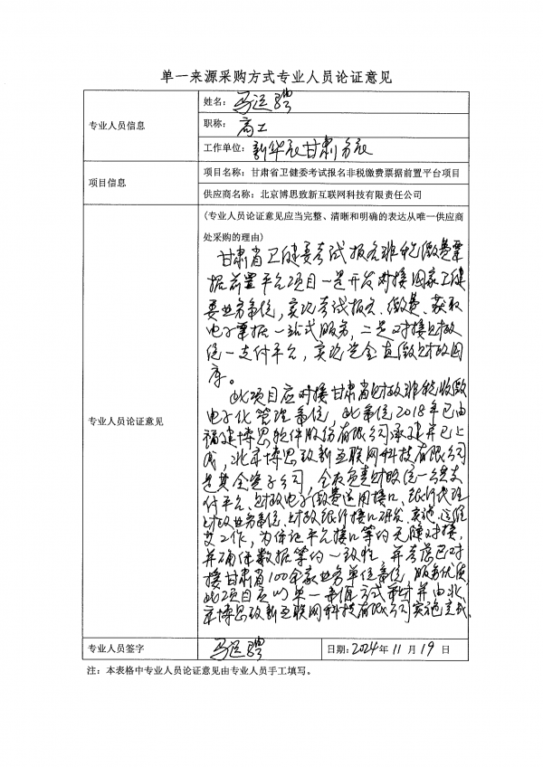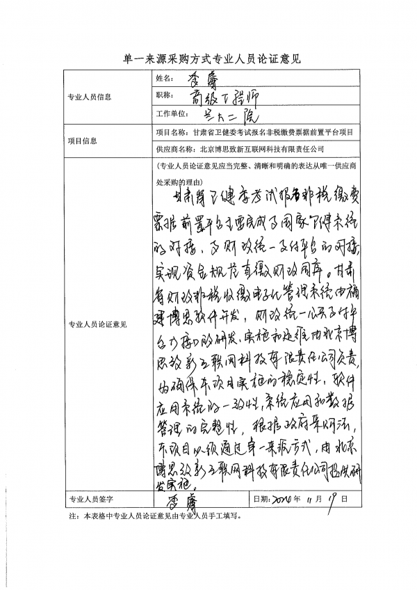 甘肅省衛(wèi)健委考試報(bào)名非稅繳費(fèi)票據(jù)前置平臺(tái)項(xiàng)目單一來源采購(gòu)公示