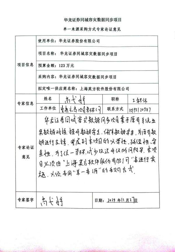 (十)任何供應(yīng)商、單位或個人對該項目采用單一來源采購方式有異議的,可以在公示期內(nèi)將書面意見反饋給華龍證券股份有限公司。