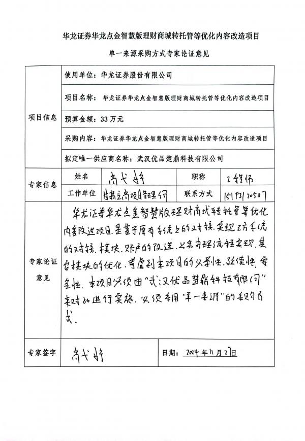 (二)項目名稱:華龍證券華龍點金智慧版理財商城轉(zhuǎn)托管等優(yōu)化內(nèi)容改造項目
