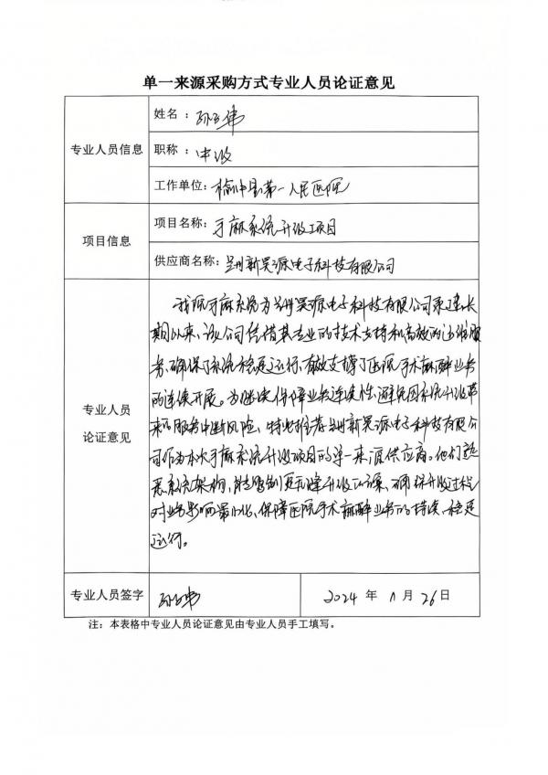 采用單一來源采購方式的原因及說明:醫(yī)院手麻系統(tǒng)作為手術(shù)麻醉業(yè)務(wù)的核心支撐,承載著大量的醫(yī)療數(shù)據(jù),蘭州新昊源電子科技有限公司作為該系統(tǒng)的承建方和維護(hù)方,為保證業(yè)務(wù)連續(xù)性,避免因系統(tǒng)升級帶來的服務(wù)中斷風(fēng)險,依據(jù)《榆中縣第一人民醫(yī)院采購管理內(nèi)部控制制度(試行)》第五十四條之規(guī)定,采用院內(nèi)單一來源采購方式,擬推薦蘭州新昊源電子科技有限公司為本項目單一來源供應(yīng)商。