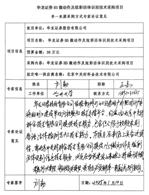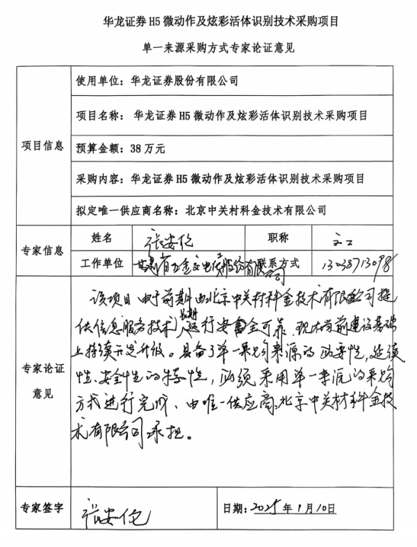 華龍證券H5微動作及炫彩活體識別技術采購項目