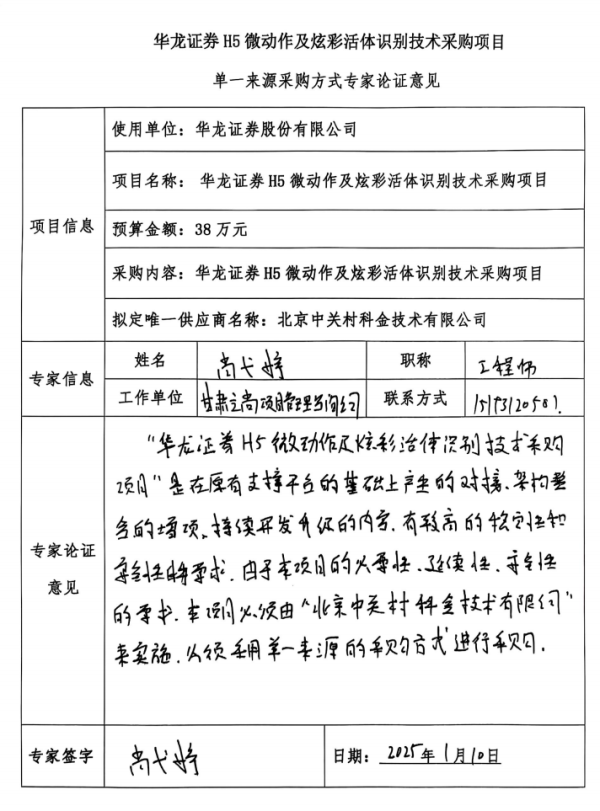 (二)項目名稱:華龍證券H5微動作及炫彩活體識別技術采購項目