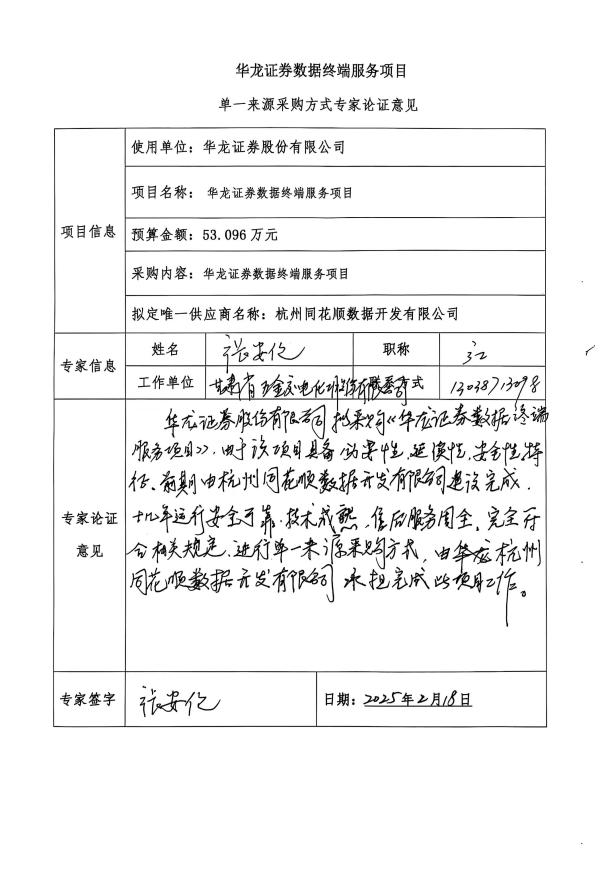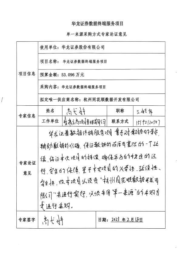 華龍證券數(shù)據(jù)終端服務(wù)項(xiàng)目單一來源公示