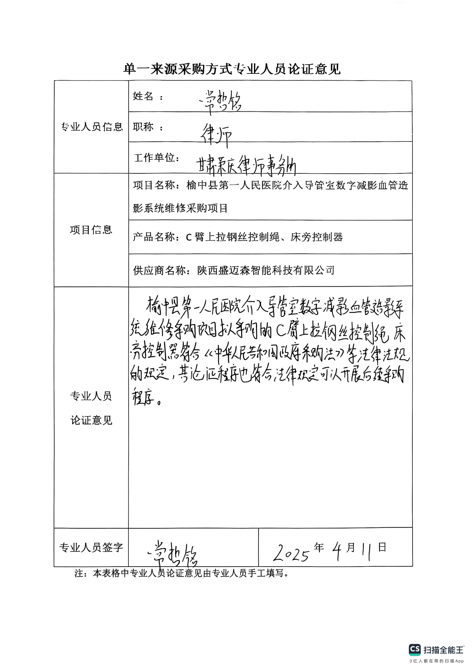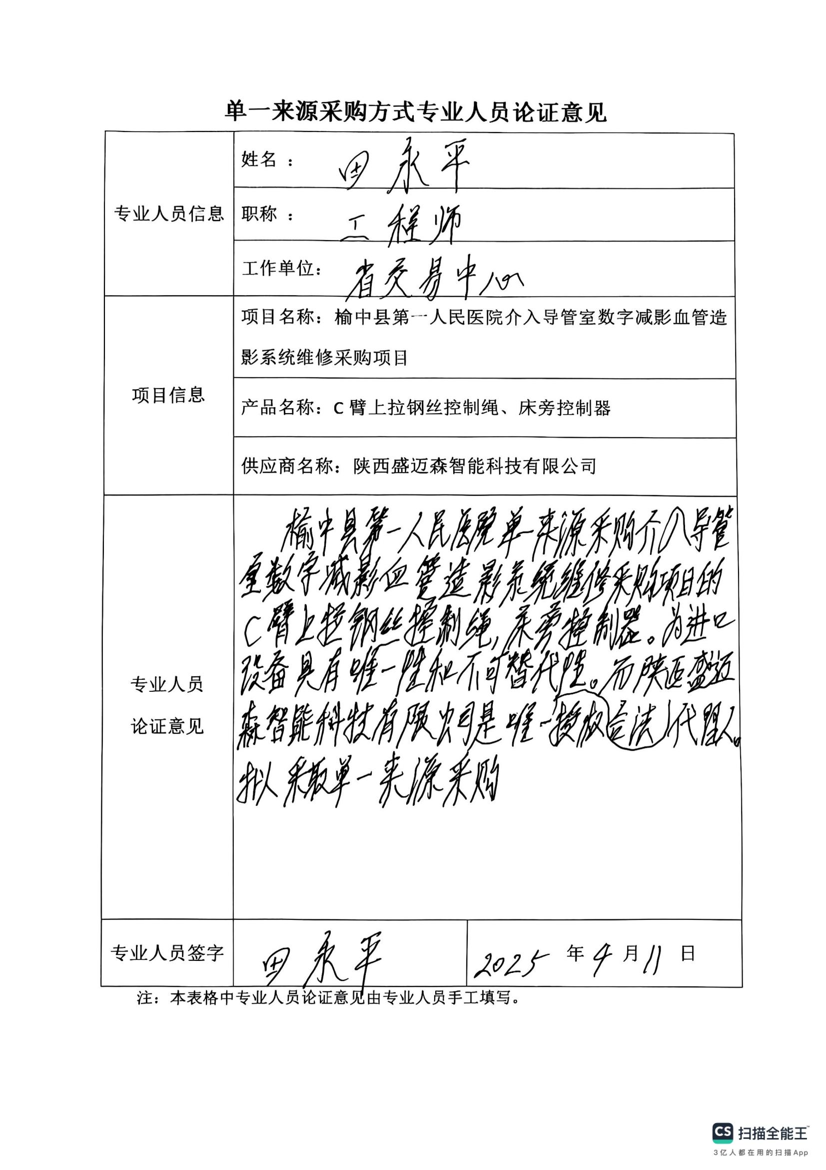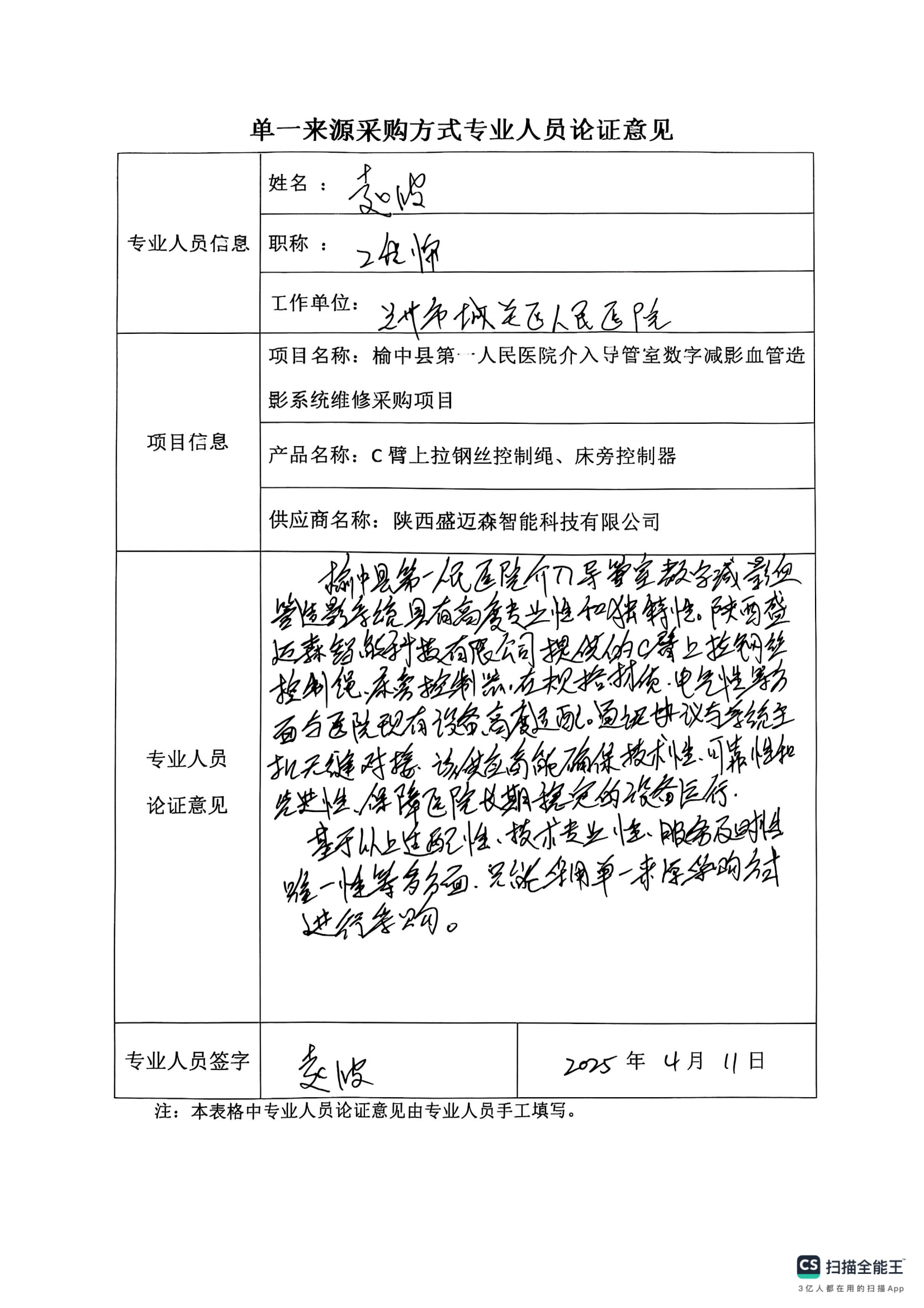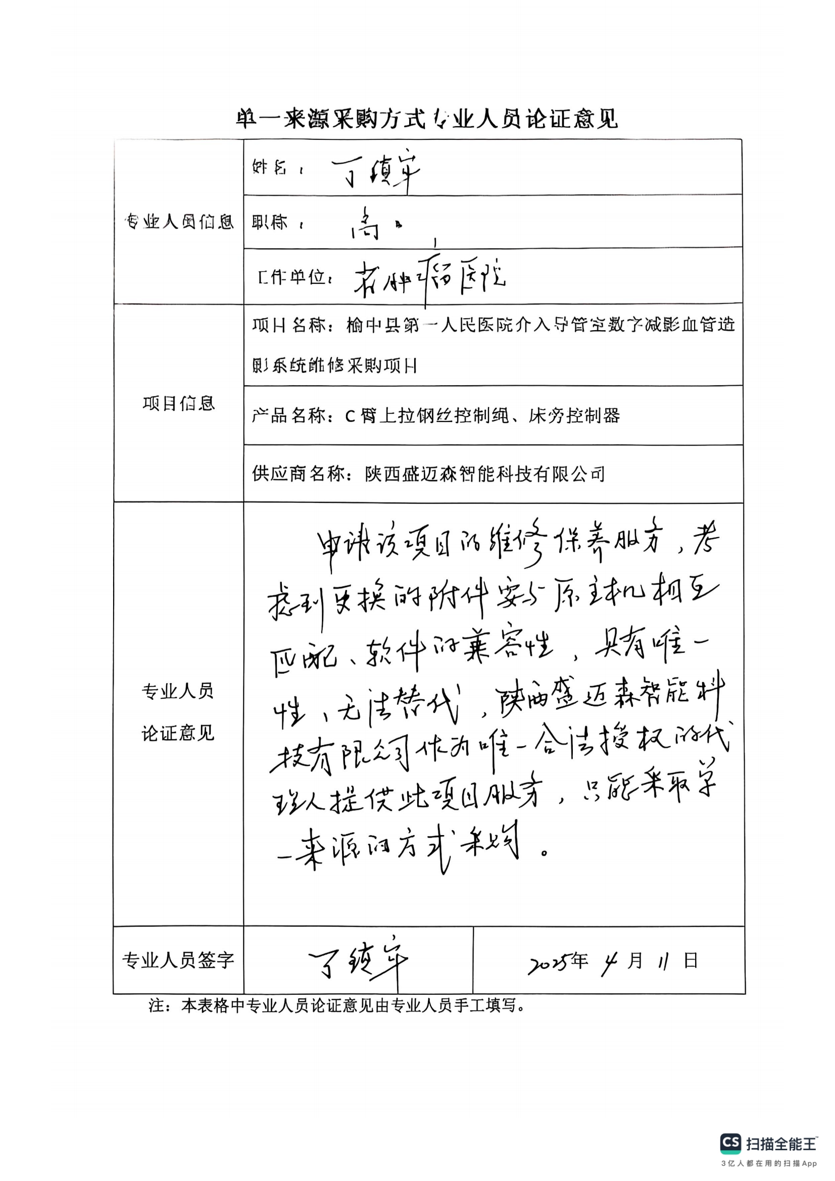 采用單一來源采購方式的原因及說明:本次申請采購的C臂上拉鋼絲控制繩、床旁控制器為進(jìn)口設(shè)備的配件,為保證與原主機(jī)相互匹配,軟件兼容,陜西盛邁森智能科技有限公司作為唯一合法授權(quán)的代理商,具有唯一性、不可替代性,依據(jù)《榆中縣第一人民醫(yī)院采購管理內(nèi)部控制制度(試行)》第五十四條之規(guī)定,采用院內(nèi)單一來源采購方式,擬推薦陜西盛邁森智能科技有限公司為本項(xiàng)目單一來源供應(yīng)商。