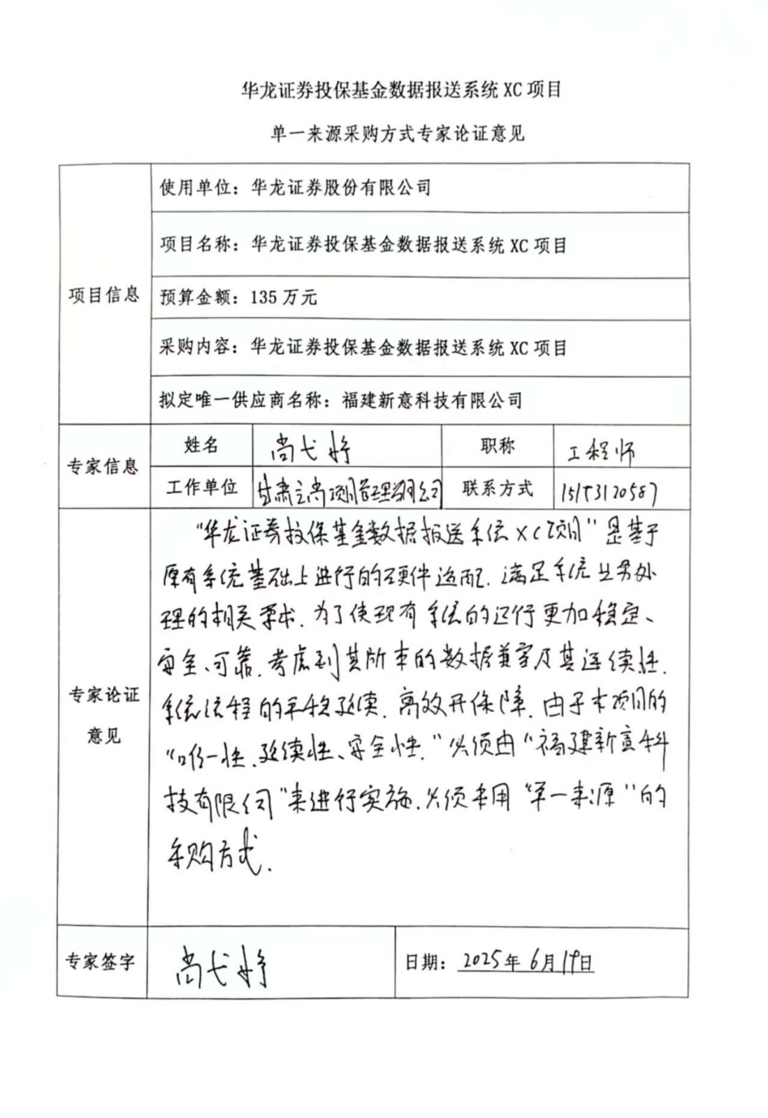 ? ? 根據(jù)以上情況,我部門擬確定以單一來源方式采購(gòu)福建新意科技有限公司上述系統(tǒng),完成公司投保報(bào)送系統(tǒng)的信創(chuàng)改造,以保證公司投保報(bào)送系統(tǒng)的正常開展。