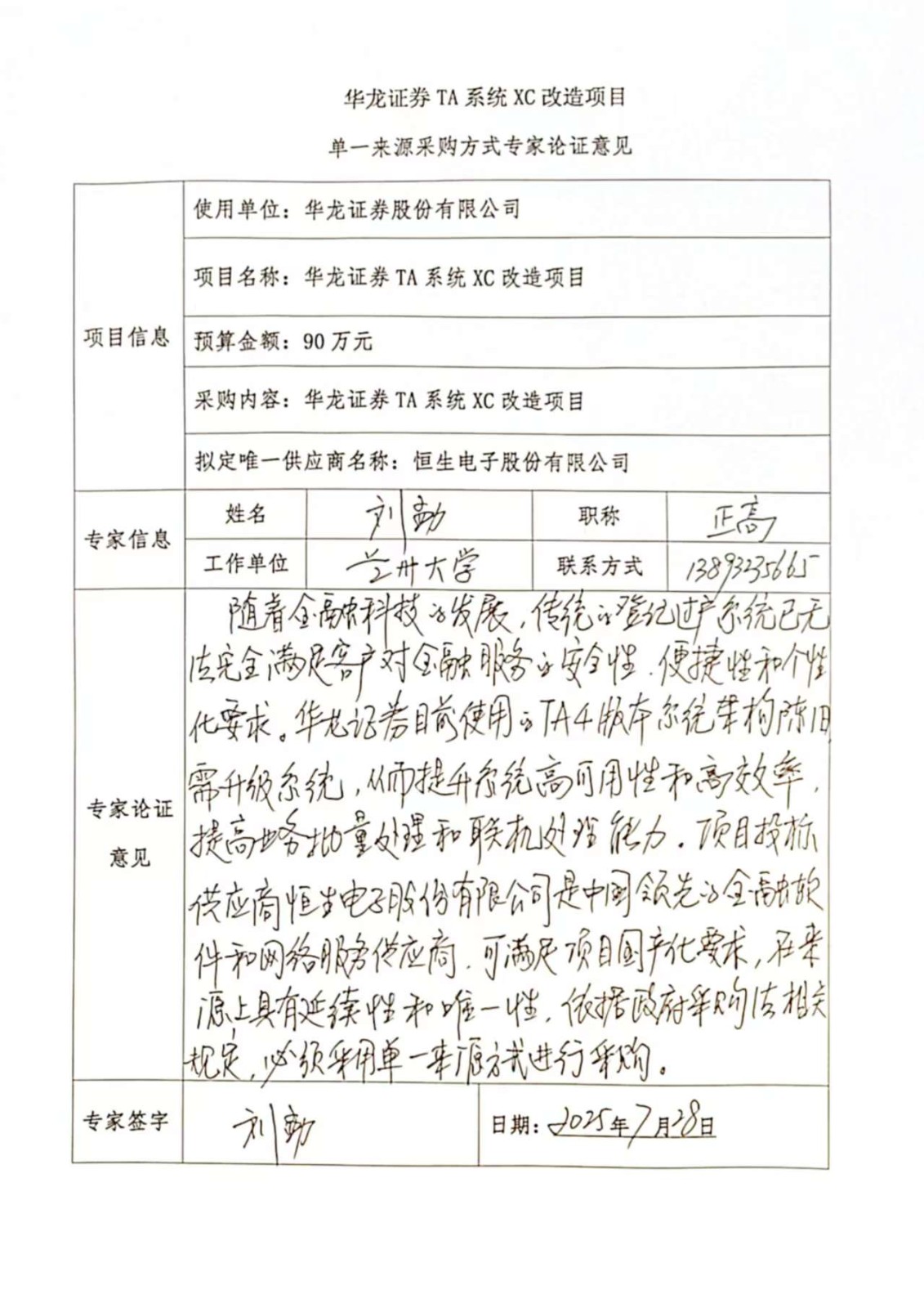 - 擬定的唯一供應商:恒生電子股份有限公司