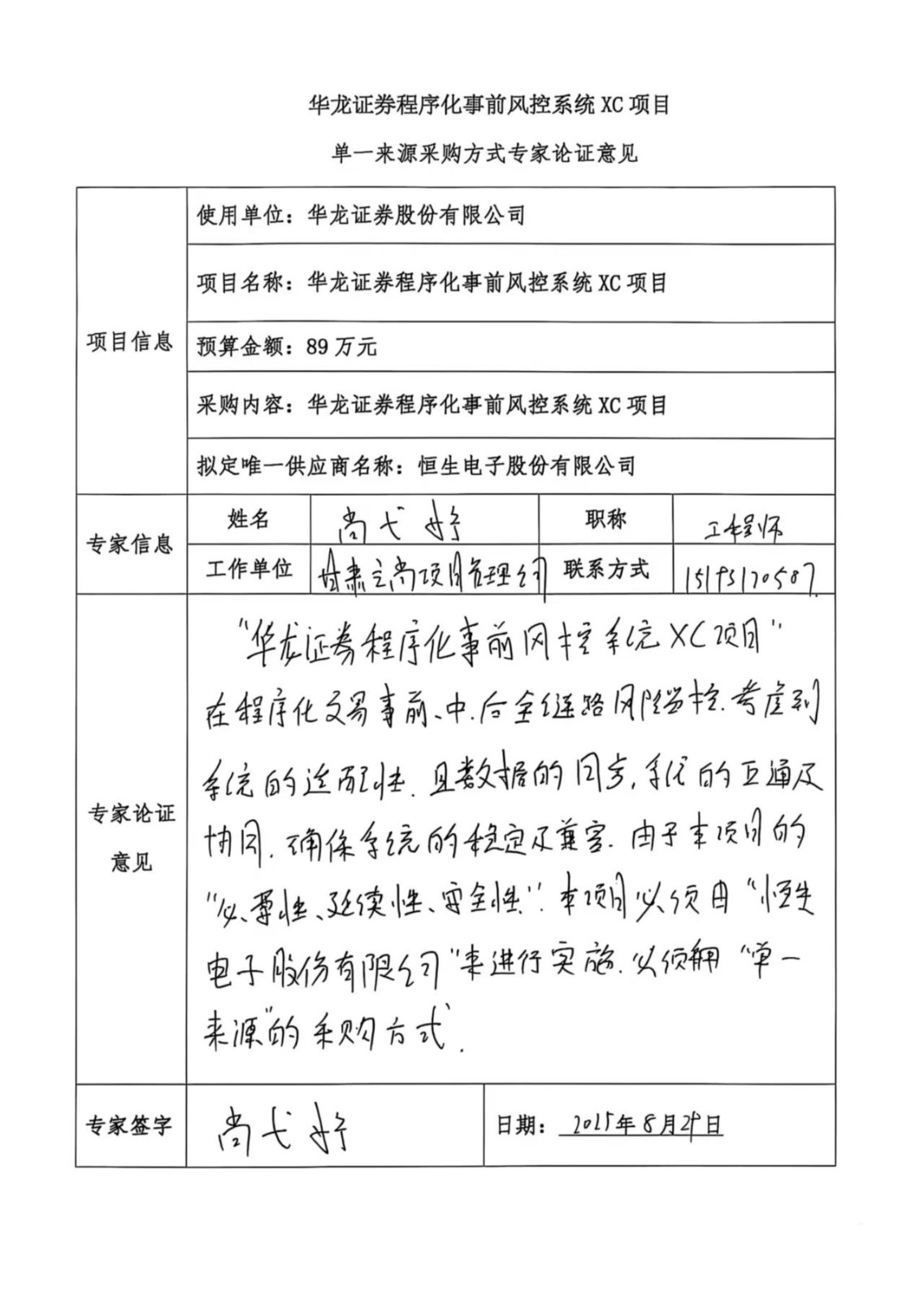 ? (六)擬定的唯一供應(yīng)商:恒生電子股份有限公司
