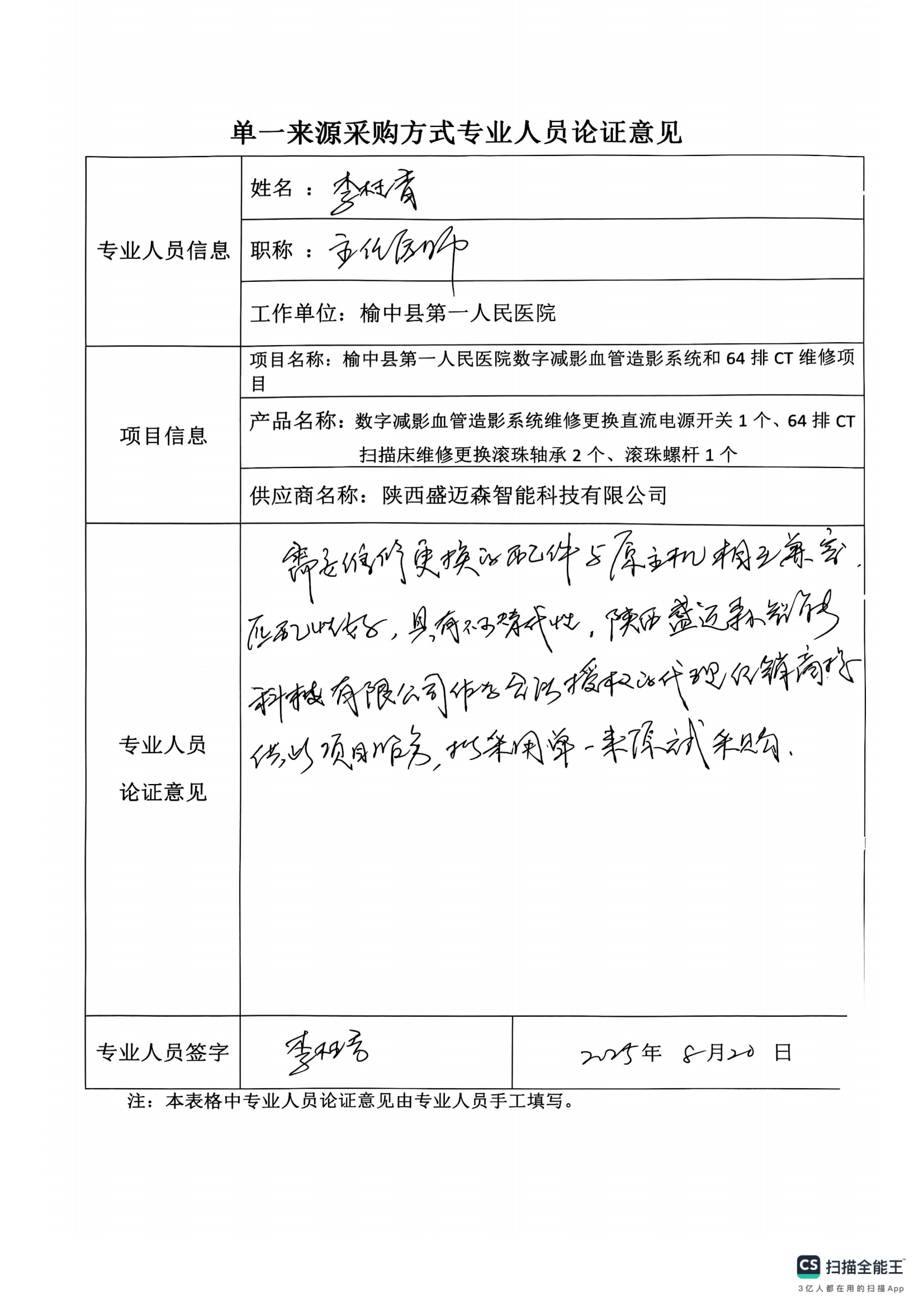 榆中縣第一人民醫(yī)院數(shù)字減影血管造影系統(tǒng)和64排CT維修采購項(xiàng)目院內(nèi)單一來源公示