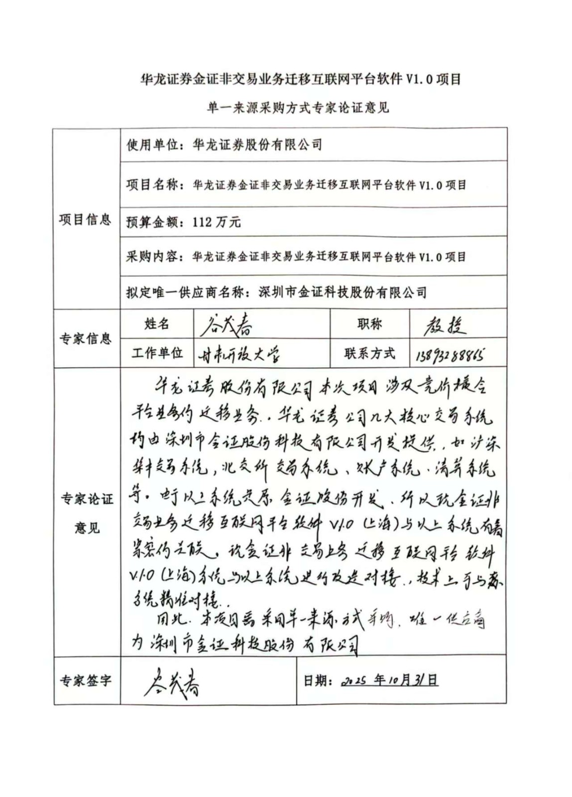 ? ?(六)擬定的唯一供應(yīng)商:深圳市金證科技股份有限公司