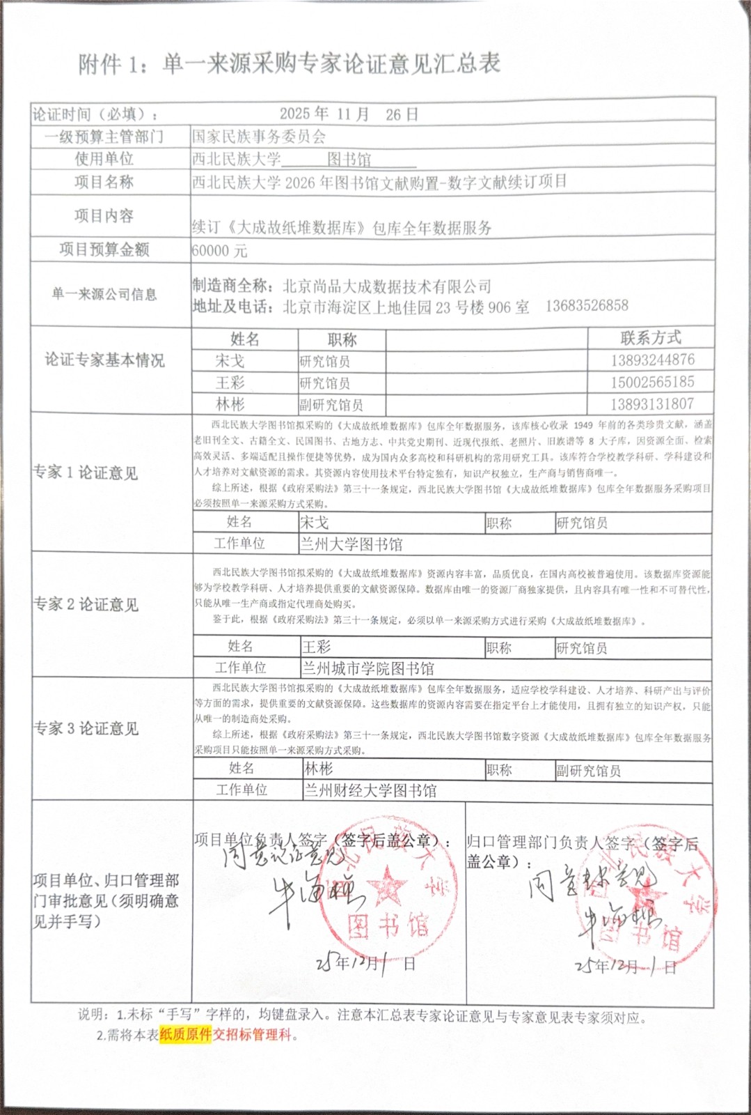 采用單一來源采購方式的原因及說明:西北民族大學圖書館擬采購的《大成故紙堆數(shù)據(jù)庫》資源內(nèi)容豐富,品質(zhì)優(yōu)良,在國內(nèi)高校被普遍使用。該數(shù)據(jù)庫資源能夠為學校教學科研、人才培養(yǎng)提供重要的文獻資源保障。數(shù)據(jù)庫由唯一的資源廠商獨家提供,且內(nèi)容具有唯一性和不可替代性,只能從唯一生產(chǎn)商或指定代理商處購買。