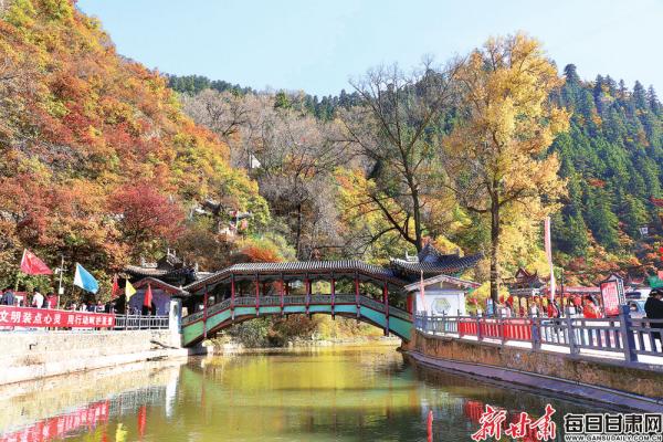 放眼隴原,在秋色的映照下,各景區(qū)的秋色處處顯示著曼妙的景致。蘭州興隆山國家級自然保護(hù)區(qū)層林盡染,處處都是絢麗畫卷;崆峒山景區(qū)霧氣繚繞,色彩繽紛,如詩如畫,仿佛置身于人間仙境;蘭州水車博覽園內(nèi)秋色宜人,斑斕的樹葉在陽光的照射下,顯得分外艷麗,一陣風(fēng)吹過,那光芒就在樹葉間跳躍,仿佛小精靈在歡快地跳舞……
