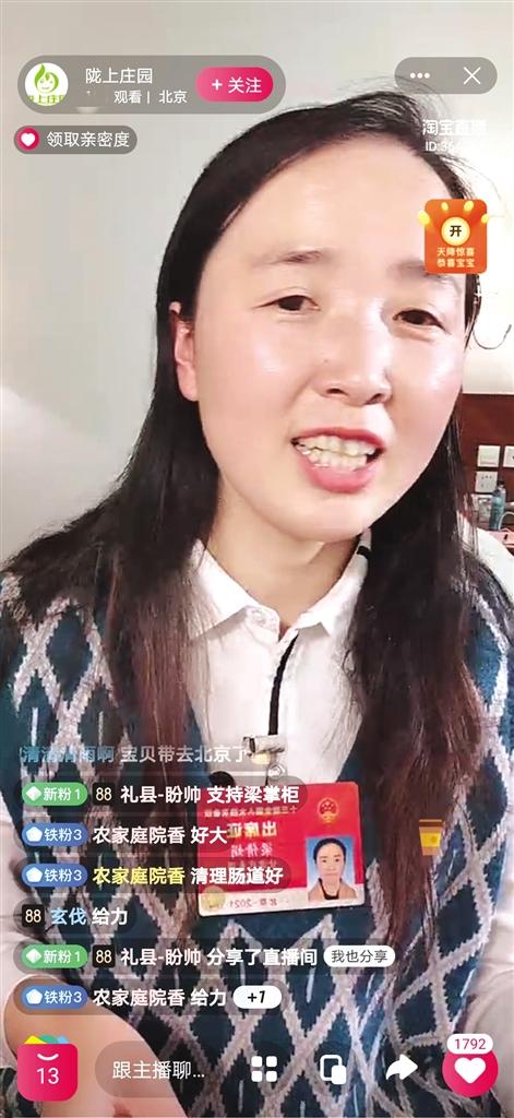 “謝謝各位親的支持,你們的訂單,都會變成鄉(xiāng)親們的笑容,我替他們謝謝大家?!?月9日晚,全國人大代表、甘肅隴南農(nóng)民主播梁倩娟在淘寶首場“鄉(xiāng)村振興公益直播”上,向每一位購買甘肅特產(chǎn)的消費者表示感謝。