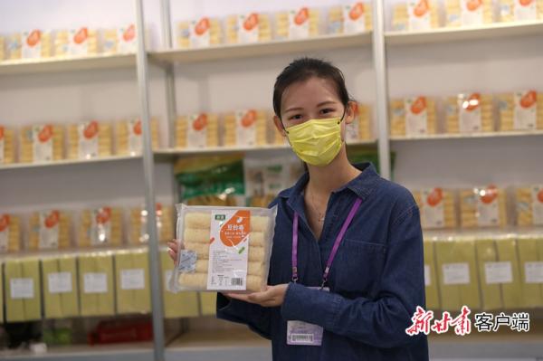 臺灣姑娘在廣交會上推介隴南徽縣的優(yōu)質(zhì)豆制品。