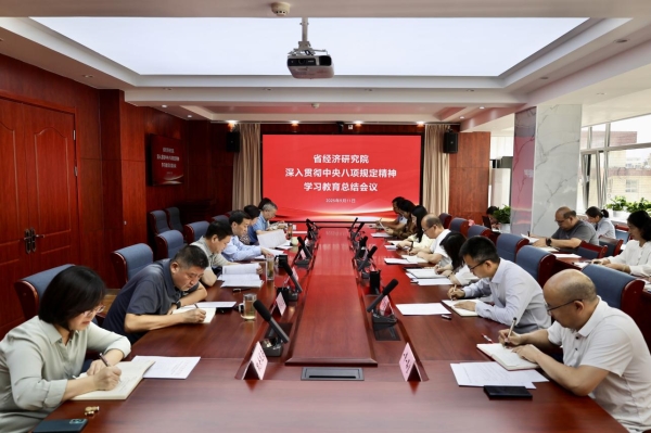 9月11日,省經(jīng)濟(jì)研究院召開深入貫徹中央八項(xiàng)規(guī)定精神學(xué)習(xí)教育總結(jié)會(huì)議,傳達(dá)學(xué)習(xí)習(xí)近平總書記關(guān)于深入貫徹中央八項(xiàng)規(guī)定精神學(xué)習(xí)教育的重要指示精神,落實(shí)中央和省委黨的建設(shè)工作領(lǐng)導(dǎo)小組會(huì)議要求,總結(jié)研究院學(xué)習(xí)教育成效,部署鞏固拓展學(xué)習(xí)教育成果、鍥而不舍落實(shí)中央八項(xiàng)規(guī)定精神、推進(jìn)作風(fēng)建設(shè)常態(tài)化長效化工作。院黨委書記周弘主持會(huì)議并講話,院長柴麗萍通報(bào)學(xué)習(xí)教育開展情況。